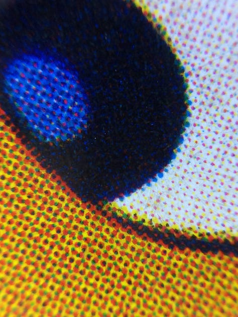 Still, something felt missing during the more chaotic parts of the song. To amp up the texture and energy, I used a cheap microscopic lens attachment on my iPhone to capture macro shots of magazine pages flashing in the background. These added bursts of colour and motion that felt right.